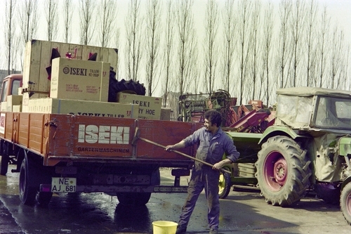 Von dieser Beobachtung inspiriert, sagt mein Vater den Mitsui Leuten zu und stimmt eine erste Bestellung ab. Mitsui eröffnet im Düsseldorfer Hafen bei der Spedition Panalpina ein offenes Zolllager, in das 1968 die erste Ware von Japan aus geliefert wird. Da ich schon immer technisch interessiert bin und als Kind auch den Monteuren in der Landmaschinen-Werkstatt zwischen den Beinen rumgelaufen bin, faszinieren mich diese kleinen Geräte ganz besonders. So etwas kenne ich bis dahin noch nicht. Herbert Hamann, Mitarbeiter in der Technik, wird der engste Verbündete meines Vaters bei der Umsetzung dieser Geschäftsidee. Er kniet sich mit allem, was er an Fachwissen und Erfahrung zu bieten hat in das neue Thema ISEKI. Wenn die Schule mittags aus ist, bin ich sein Lehrling und Gehilfe. Dafür gibt es Taschengeld.